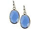 Blue Oval Cut Faceted Lucite Stone Metal Frame Fish Hook Earrings