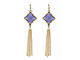 Purple Metal Frame Rhombus Stone Chain Tassel Fish Hook Earrings
