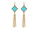 Turquoise Metal Frame Rhombus Stone Chain Tassel Fish Hook Earrings