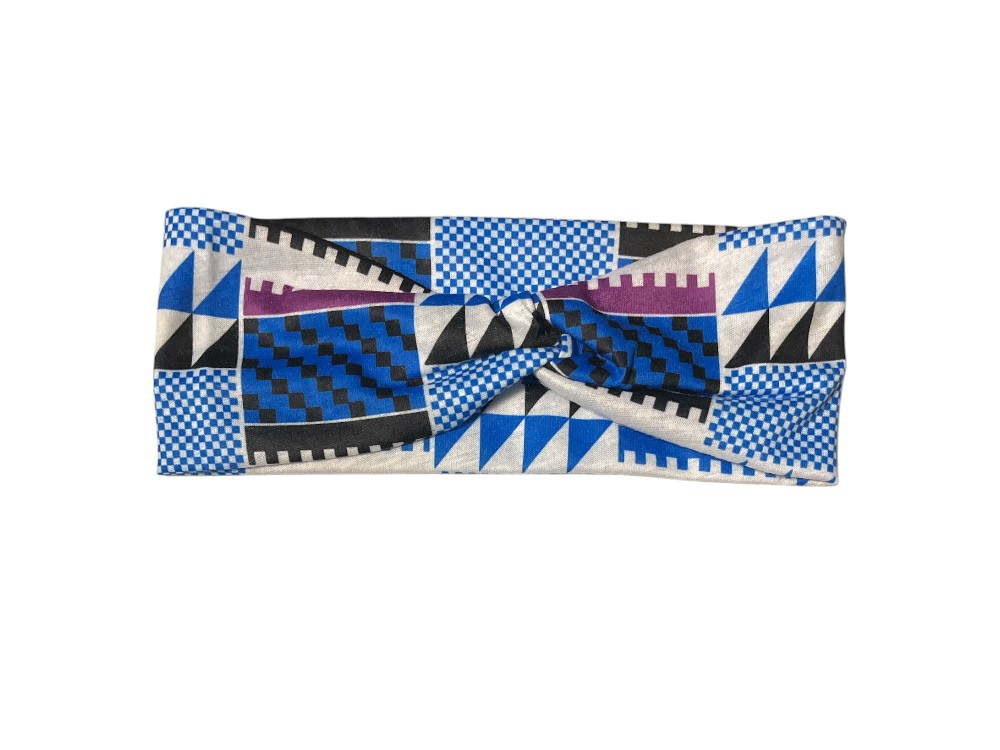 Blue Twisted Knot Cotton Wide Stretch Headband