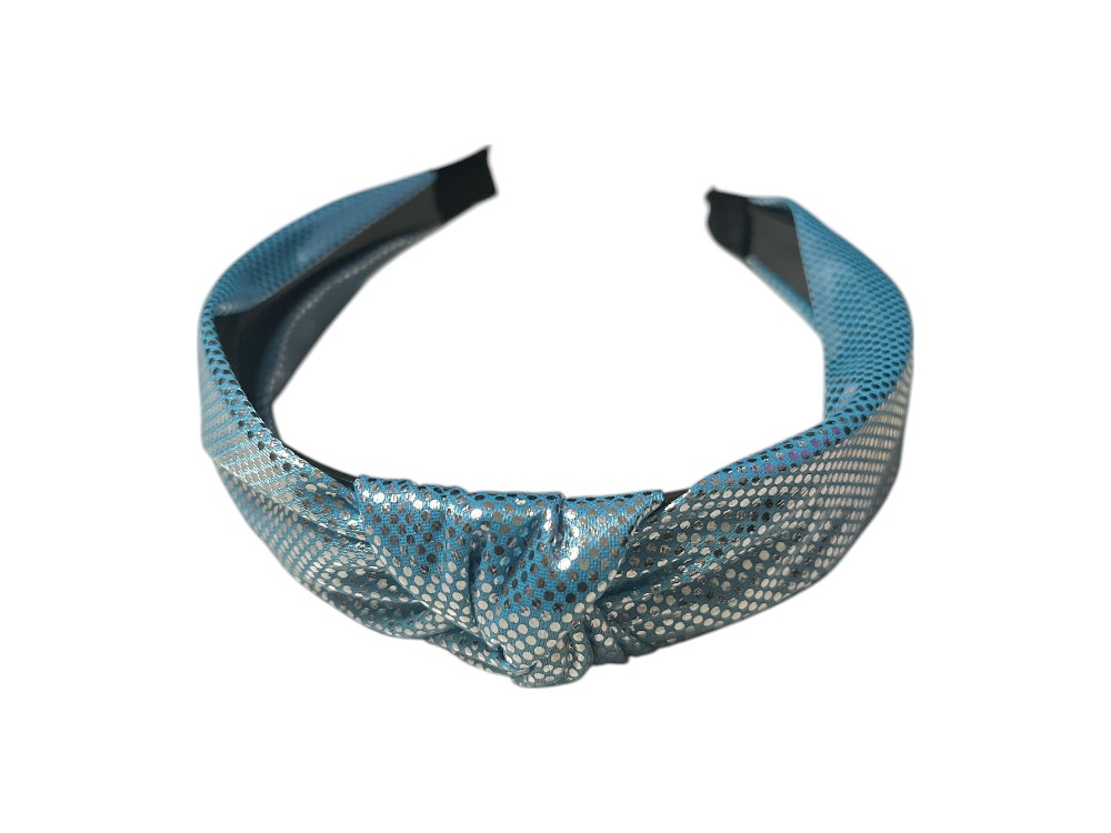 Blue Metallic Dots Fabric Fashion Headband w/ Top Knot