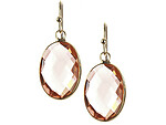 Peach Oval Cut Faceted Lucite Stone Metal Frame Fish Hook Earrings