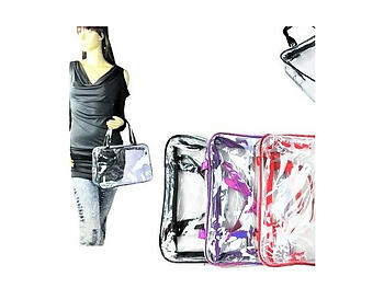 Accessorize yourself with this event stadium approved clear see thru handbag / makeup bag with colored trim! Bag measures 12" x 8.5" and has a zipper closure to keep your items secure. This bag can also be used as a toiletry bag for men or women. The clear design is ideal for stadiums, concerts, theme parks and other venues with a clear bag policy. This fashion accessory will also make a great gift idea.