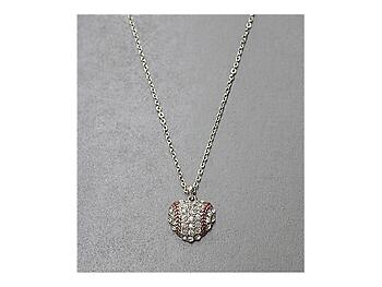 18" Red and Shiny Silver Crystal Accent Tiny Heart Shaped Baseball Necklace
