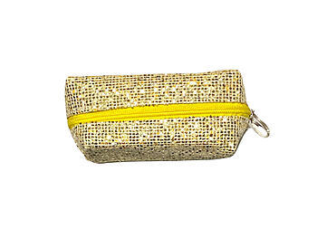 4" Sequin Sparkle Mini Cosmetic Bag / Coin Purse with Key Ring. Accessorize yourself with this colorful little bag that measures 4" x 2.5" x 2" and features a zipper closure. It is the ideal size for your purse or to keep in your work desk drawer for personal necessities. Oh so cute! A perfect item for yourself or for gift giving.