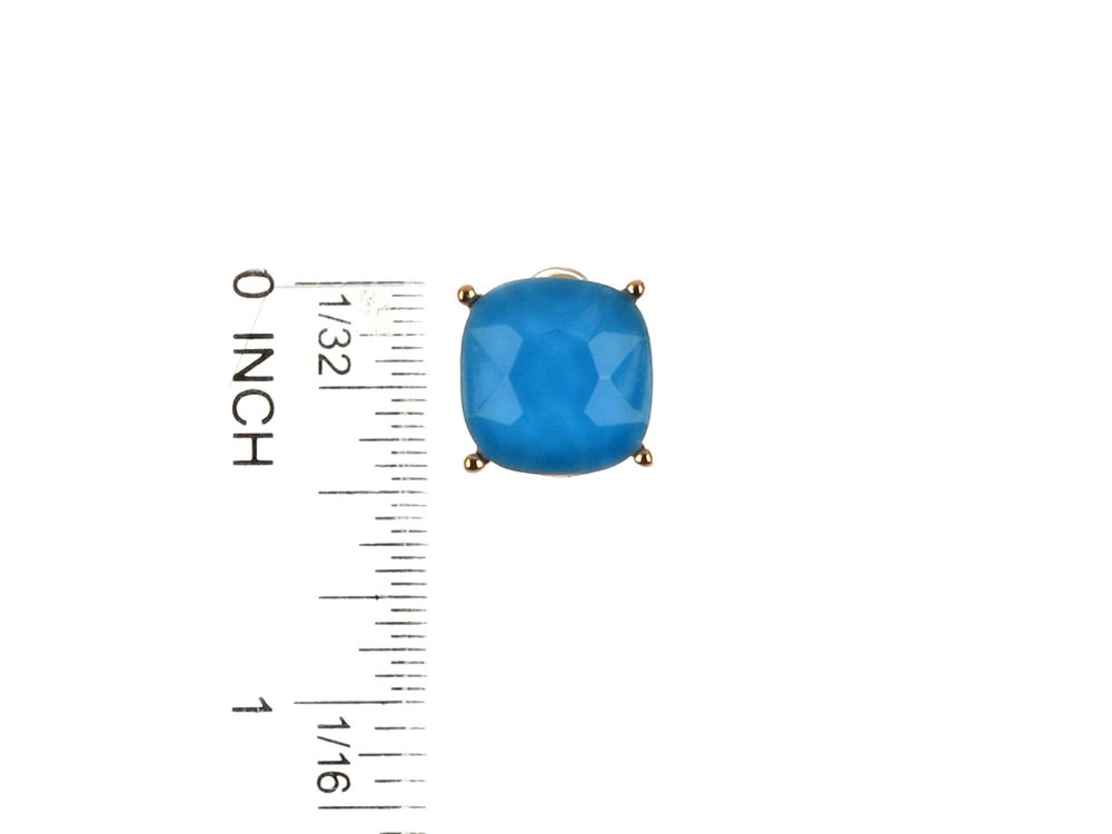 Aqua Blue Cushion Cut Faceted Lucite Stone Metal Setting Post Pin Earrings