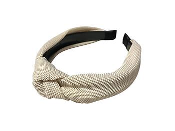 Beige Wide Textured Fabric Fashion Headband w/ Knot