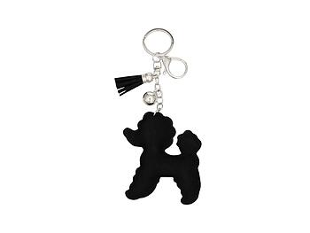 Black & Silver Poodle Tassel Bling Faux Suede Stuffed Pillow Key Chain Handbag Charm. Perfect bling accessory to decorate your keys or your handbag! This stuffed pillow keychain measures 3" x 3" and is adorned with pave crystal stones and comes with a claw hook. This item is perfect for yourself or for gift giving.