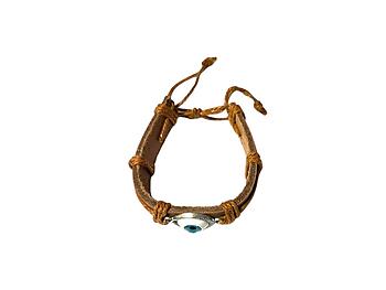 Brown Leather Band Evil Eye Good Luck and Protection Bracelet