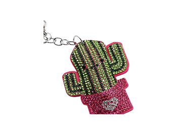 Cartoon Cactus Tassel Bling Faux Suede Stuffed Pillow Key Chain Handbag Charm. Perfect bling accessory to decorate your keys or your handbag! This stuffed pillow keychain measures 2" x 2.5" and is adorned with pave crystal stones and comes with a claw hook. This item is perfect for yourself or for gift giving.
