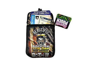 Colorful & Fun Neoprene Cigarette Pouch with Snap Clasp Closure. Keep your cigarette handy is this colorful cigarette case. Features a clasp closure and a pocket for your lighter, credit card or cash on the front. This case measures 5.75" x 3 1/4" x 3/4" and will fit both regular and 100 size cigarettes. This case is perfect for yourself or for gift giving.