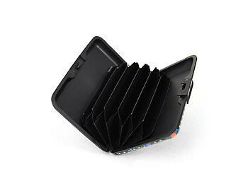 This pocket size wallet is compact, strong, and will protect your credit cards from demagnetization risks and RFID identity theft! This wallet will store credit cards, business cards, and a limited amount of cash. Features a snap closure and measures approximate size is 4.25" x 2.75" x .75" with 7 secure-fit accordion pockets that fan out for easy access. This item is perfect for yourself or for gift giving.