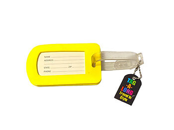 Rubber luggage tag with name and address card. Tag measures 3.5" x 2.25" and is made of flexible material to prevent breaking or losing your tag. It is perfect for yourself or for gift giving.