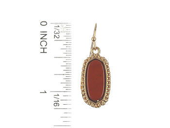 Hexagonal Oval Natural Stone Matte Finish Metal Textured Frame Earrings. Earrings have a