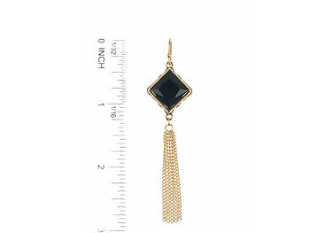 Black Metal Frame Rhombus Stone Chain Tassel Fish Hook Earrings