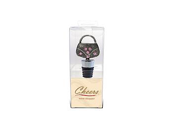 Modern and practical, this sturdy stopper feature a cute, carefully molded metal lady purse studded with rhinestone on top of a chrome base wrapped with a thin black liner for a snug fit. This favor is sure to impress your guest with its sophistication and elegant design. This unique wine stopper is designed to last and will be a great add to your kitchenware collection.