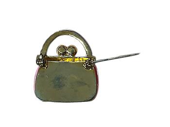 Acrylic Handbag Brooch. A beautiful pin that measures 1.37" x 1.2". A perfect item for yourself or for gift giving.