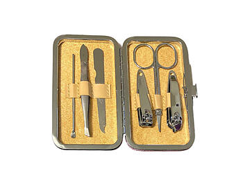This personal grooming manicure set features a padded, stylish, handy case. It is lightweight and convenient for you to carry in your every day bag or while traveling. This lovely case measures 4.25" x 2.5" x .75" and contains 6 manicure tools. It is perfect for yourself or for gift giving.
