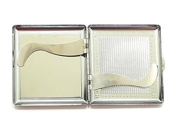 Bling Double Sided Metal Cigarette Case for Kings/ Wallet. This Beaded Metal Cigarette Case features has an easy side open latch and two spring loaded arms on each side to hold your cigarettes or cards in place. The case is made of metal and has a beaded design on the front. Approximate size is 3.5" x 3.25" x .75". This item is perfect for yourself or for gift giving.
