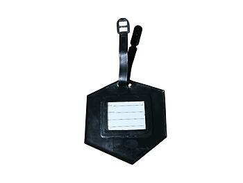 Rubber "Turquoise Gift Box" shaped luggage tag with name and address card on the back. Tag measures