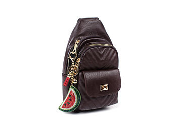 Watermelon Slice Faux Suede Tassel Stuffed Pillow Key Chain Handbag Charm. Perfect bling accessory to decorate your keys or your handbag! This stuffed pillow keychain measures 3 1/4" x 1 3/4" and is adorned with pave crystal stones. It comes with a claw hook and has a total length of 6 1/2". This will definitely stand out and show your fun personality. It is perfect for yourself or for gift giving. Bag in picture not included.